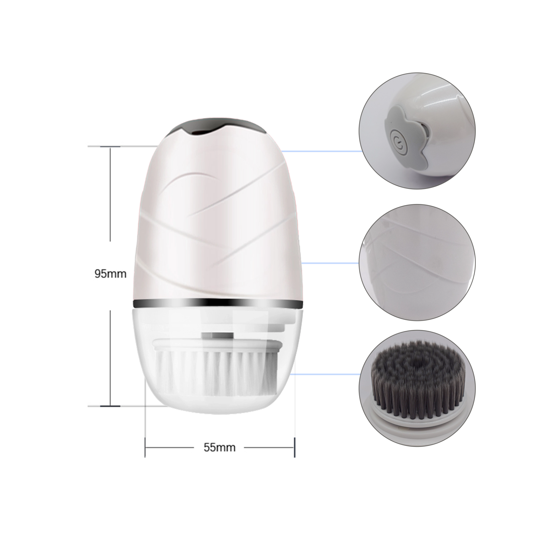 بفضل تصميمها المدمج بحجم 95×55×55 مم، يمكنك حملها بسهولة في حقيبتك واستخدامها في أي وقت ومكان. تأتي مع ثلاث رؤوس قابلة للتبديل لتناسب مختلف احتياجات البشرة، سواء للتنظيف العميق أو لإزالة المكياج أو لتقشير خفيف. كما يشمل البكج كابل شحن لسهولة إعادة الشحن، لتبقي جهازك دائمًا جاهزًا للاستخدام.
