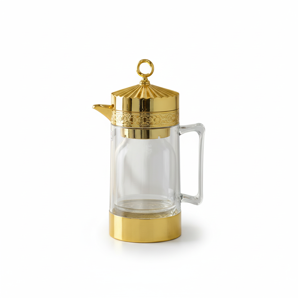 صُمم إبريق AL19080G من زجاج شفاف عالي الجودة يبرز جمال المشروب ويتيح متابعة مستوى السائل بسهولة، مع غطاء وقاعدة بلمسات ذهبية تضيف طابعًا فخمًا يعكس الذوق الرفيع.