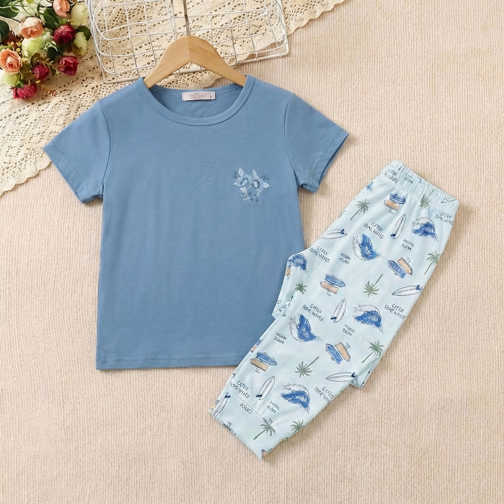 البيجامات مصنوعة من قماش قطني ناعم وعالي الجودة، ملمسه لطيف على البشرة ومناسب جدًا للأطفال. القطن المستخدم خفيف، مريح، ويسمح بمرور الهواء، مما يجعله مثاليًا للنوم والاستخدام اليومي خاصة في الأجواء الدافئة. الخامة مرنة بشكل بسيط وتتحمل الغسيل المتكرر دون أن تفقد نعومتها أو لونها.