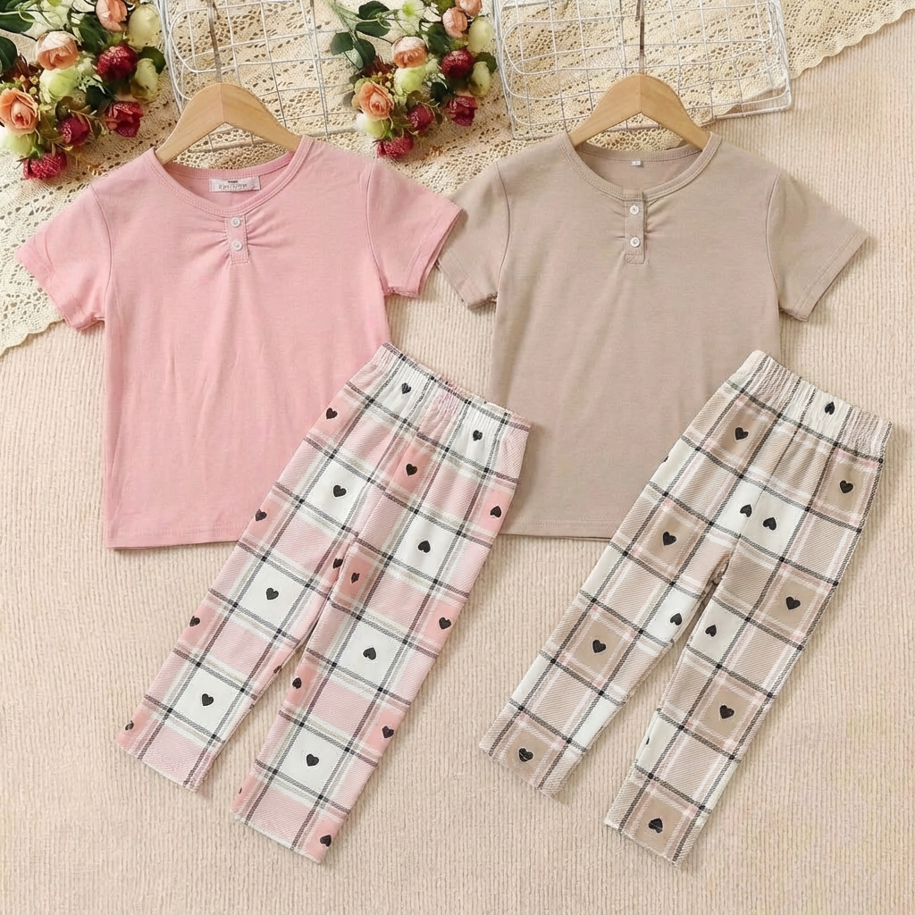 موديل عملي وعصري للأطفال، يجمع بين الراحة والشكل الجذاب. مناسب للنوم ولبس البيت، ويعطي مظهرًا مرتبًا دون تكلف. القصّة مريحة وتناسب حركة الطفل.