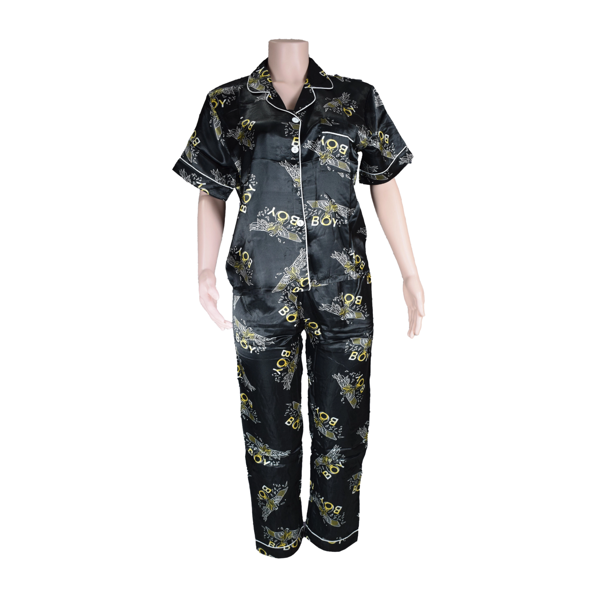تمتعي بالرفاهية والراحة مع بجامة الحرير النسائية الفاخرة، المصممة من خامات حريرية ناعمة وملمسها الحريري يمنحك شعوراً بالراحة طوال اليوم. تتكون البجامة من قطعة علوية أنيقة بأكمام قصيرة مع إغلاق أزرار يضفي لمسة كلاسيكية، وبنطلون طويل متناسق يمنحك حرية الحركة. اللون يجمع بين الأبيض والأسود في تصميم متوازن وأنيق، مثالي للاسترخاء أو النوم بأناقة.