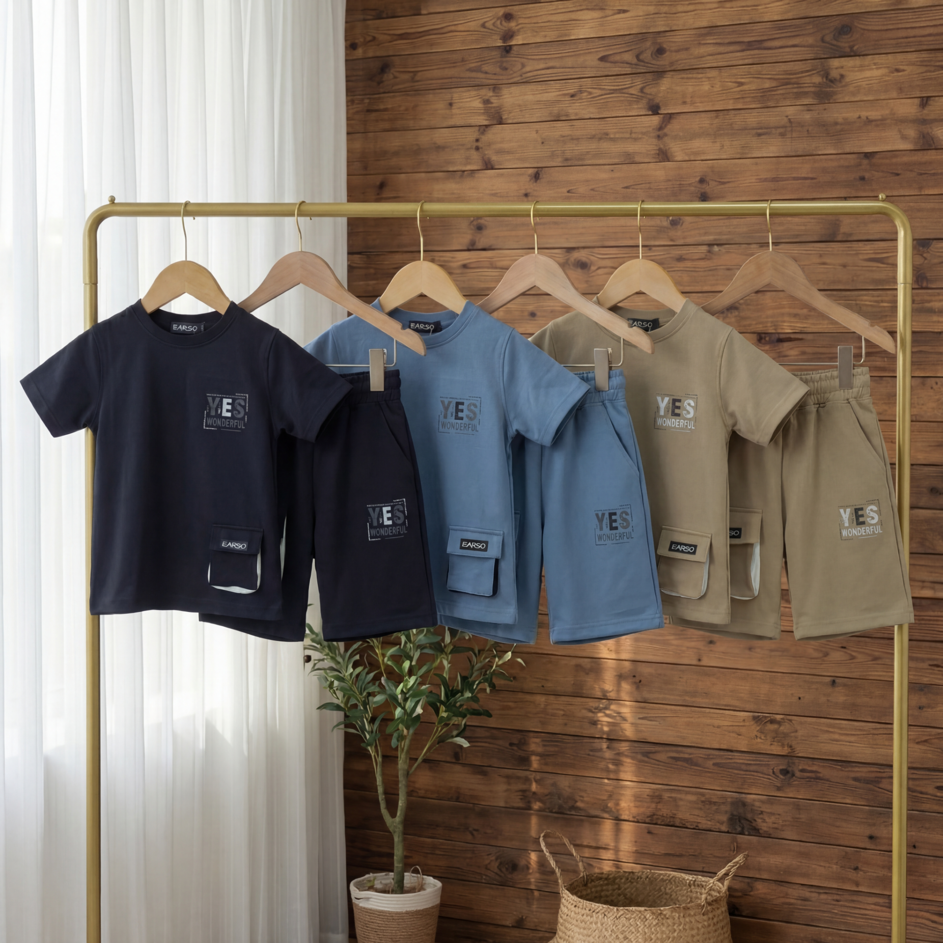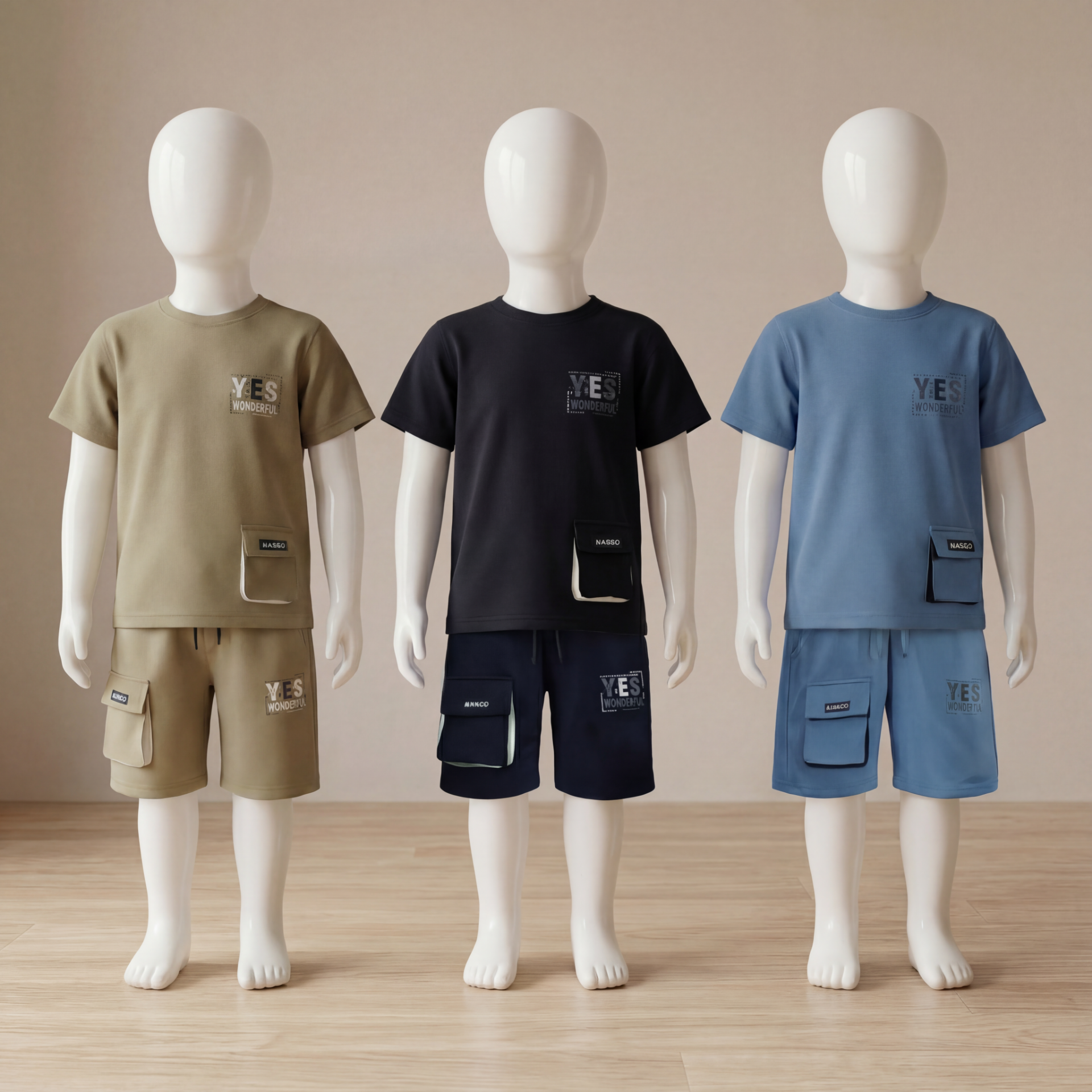 * بدلات مكوّنة من تيشيرت نص كم + شورت.