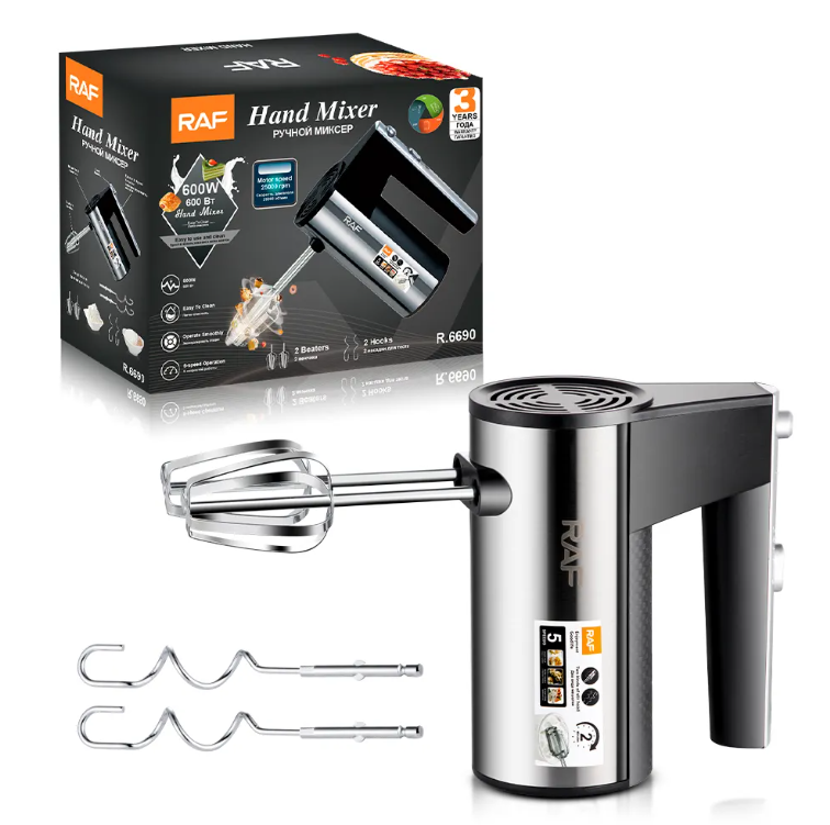 "لا تفوت فرصة الحصول على خلاط يدوي كهربائي RAF موديل R.6690 الآن! اجعل تحضير الكيك والعجائن أسهل وأسرع مع هذا الخلاط المتعدد الاستخدامات."
