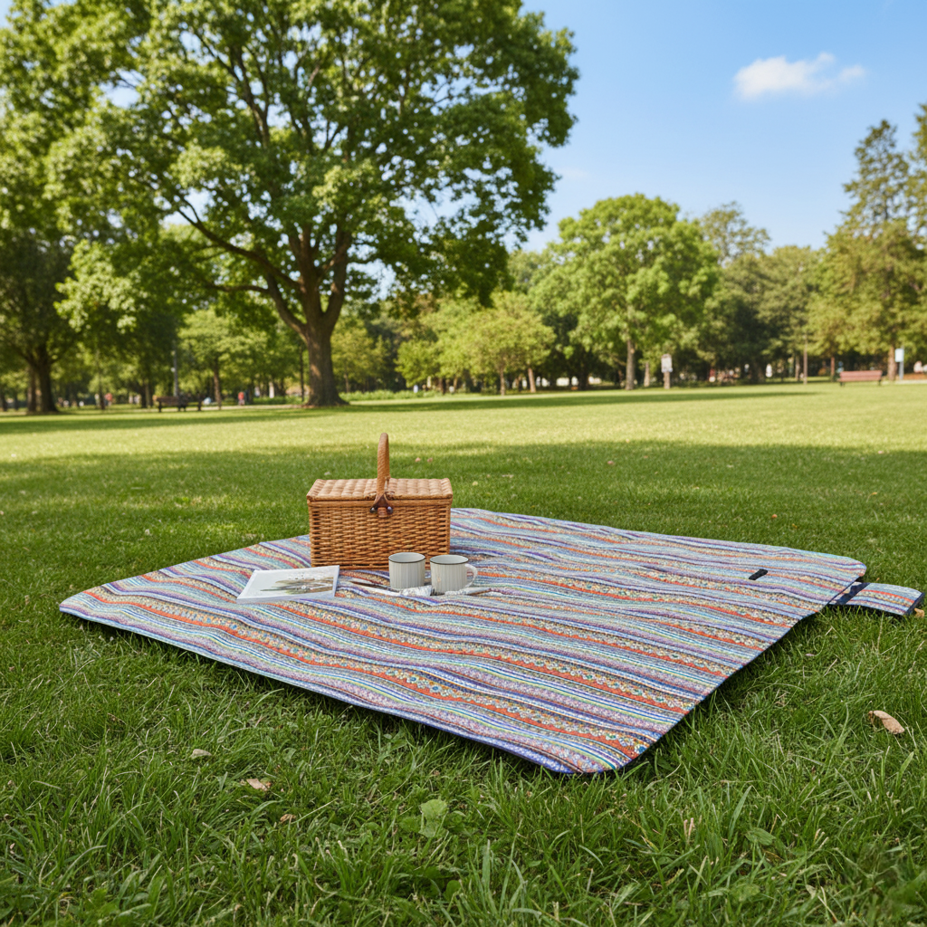 صممت هذه السجادة خصيصاً لعشاق الطبيعة والنزهات العائلية. بمساحتها الواسعة 130×150 سم، توفر راحة فائقة للجلوس وتناول الطعام في الحدائق والشواطئ. السطح الناعم يحميك من الحصى والأعشاب، بينما الطبقة السفلية المقاومة للماء تحافظ على جفافك وراحتك.