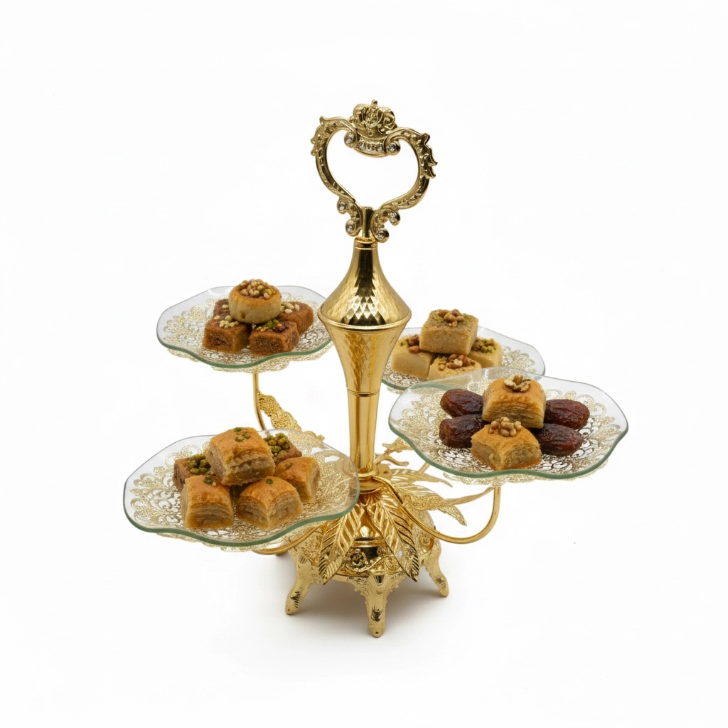 سلة حلويات ذهبية 4 خانات جديد