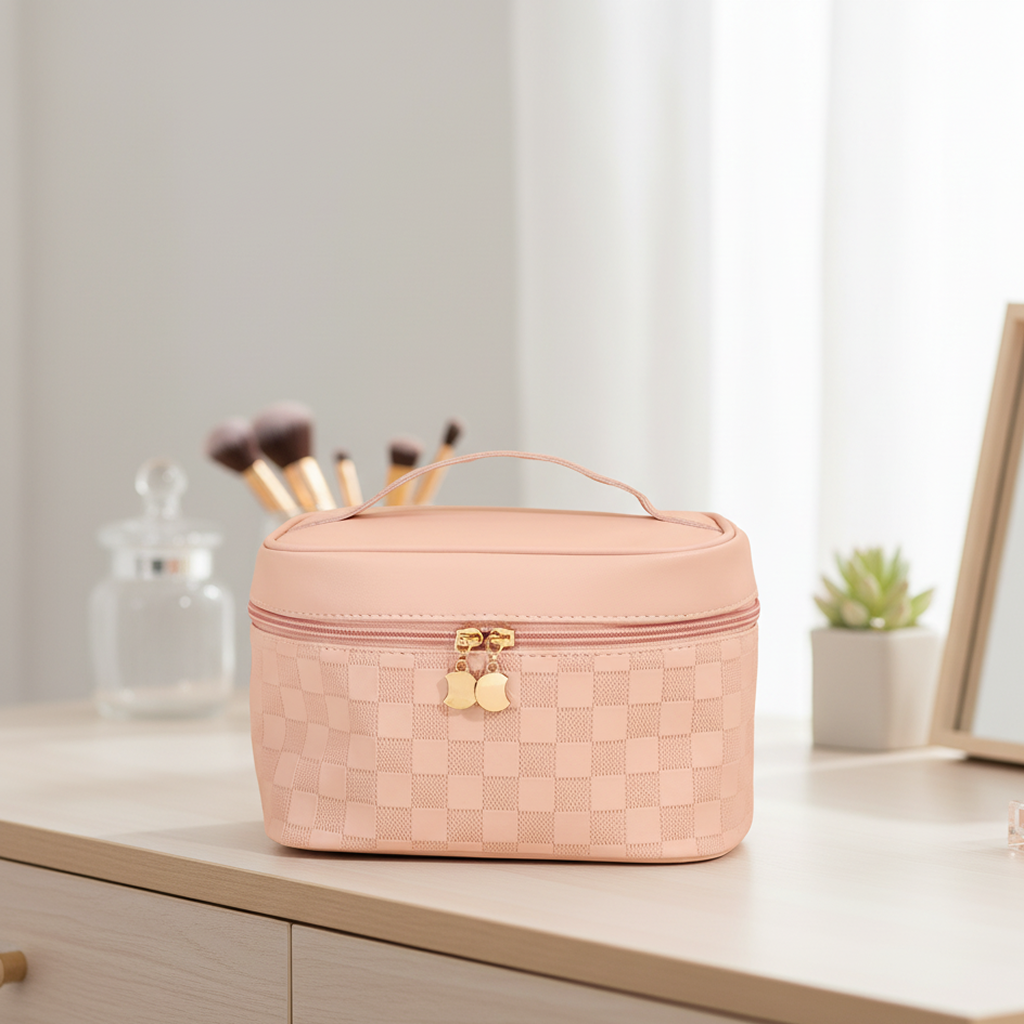 احملي مستحضراتكِ المفضّلة بسهولة وأناقة مع شنطة مكياج HZB45 — الحل المثالي لتنظيم أدوات التجميل والعناية الشخصية سواء أثناء السفر أو في الاستخدام اليومي بالمنزل.