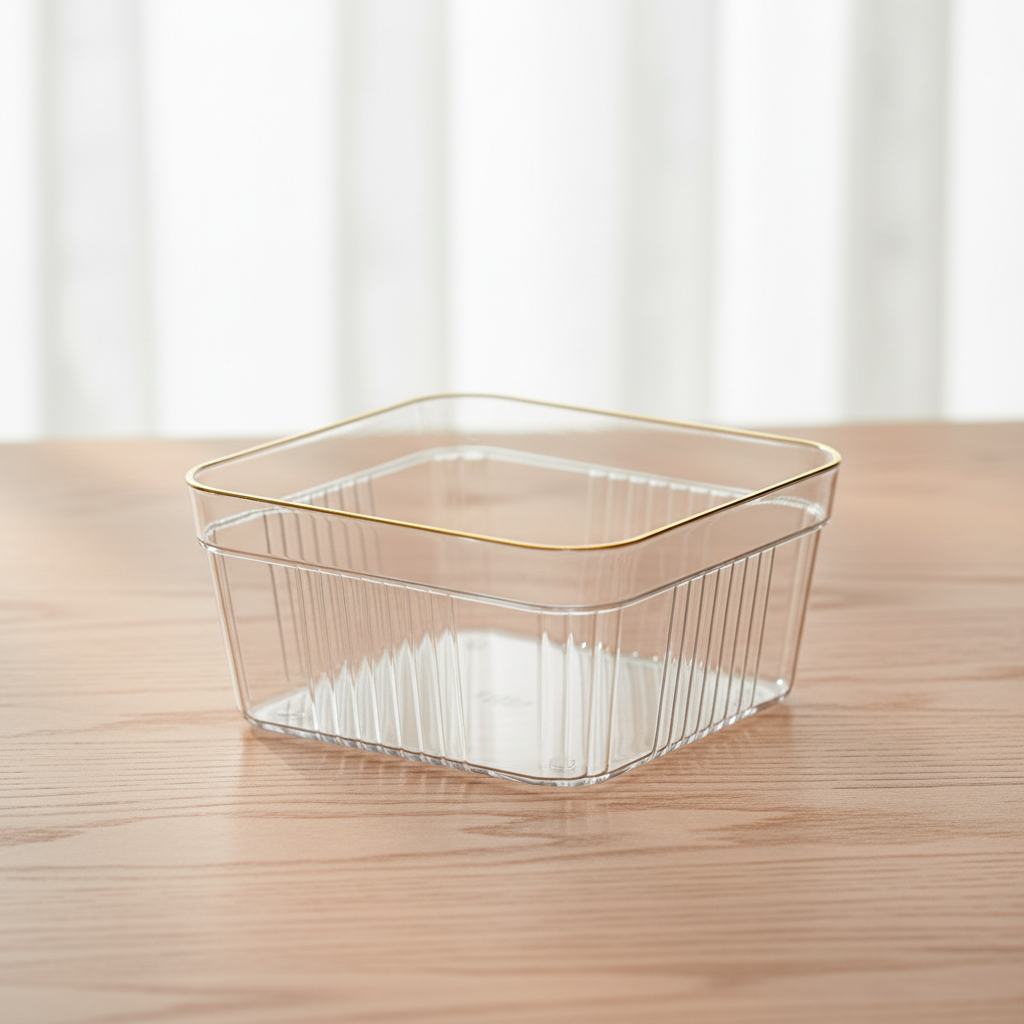 صحن تقديم اكريليك مربع بحواف ذهبية 996-1