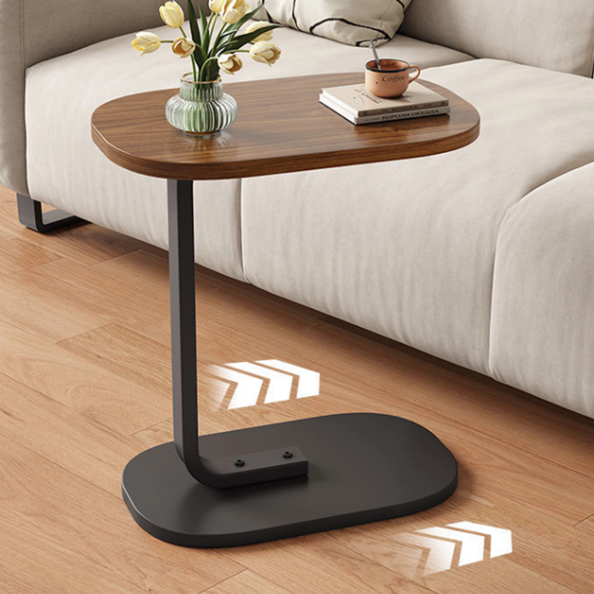 طاولة جانبية خشبية على شكل حرف c