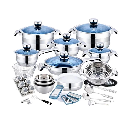 طقم أواني طبخ من 100 قطعة من الاستيل – يتضمن عدة أنواع من الأواني المنزلية المتنوعة