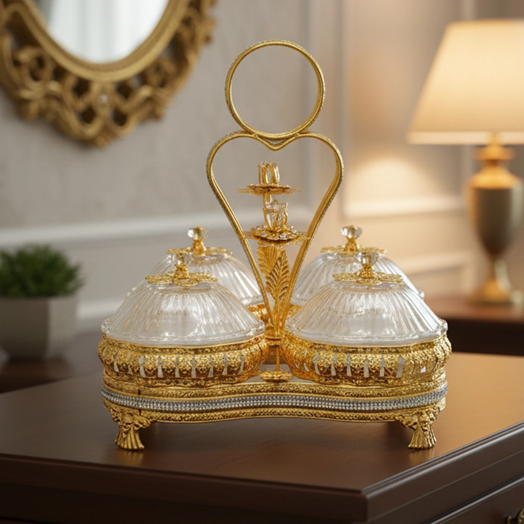 طقم تقديم حلويات بشيال ذهبي 4 خانات