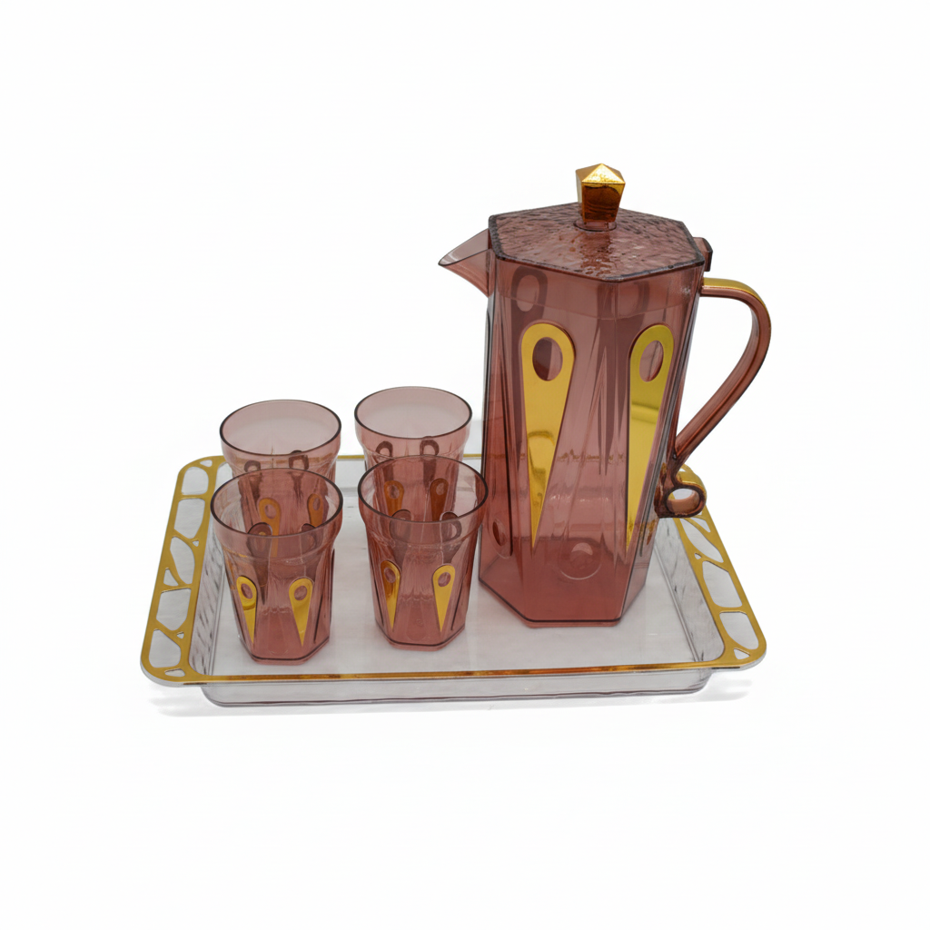 طقم جيك شفاف مع 4 اكواب وصينية التقديم H9-98002-4