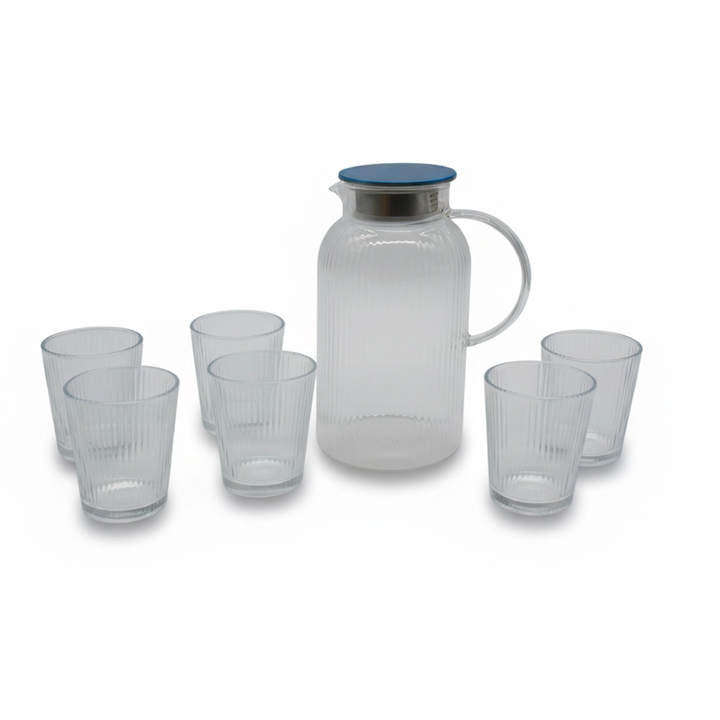 طقم جيك عصيرزجاج شفاف مع 6 اكواب مقلم