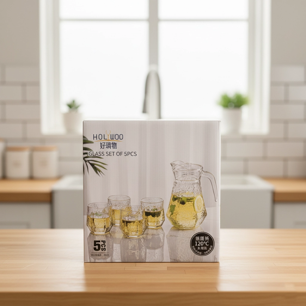 طقم جيك عصير شفاف مع 4 اكواب بغطاء بلاستيك 66310-7