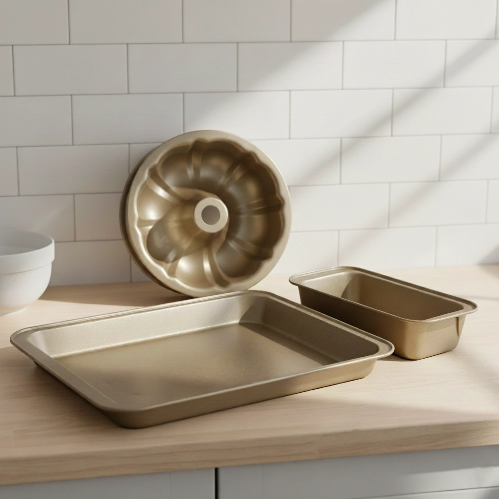 طقم صواني كيك 3 قطع على شكل زهرة مستطيل