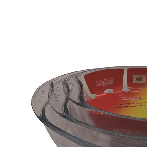 تتميز الصواني الشفافة بمسكات جانبية قوية توفر قبضة محكمة وآمنة. يمكنك بسهولة وضعها في الفرن وإخراجها.