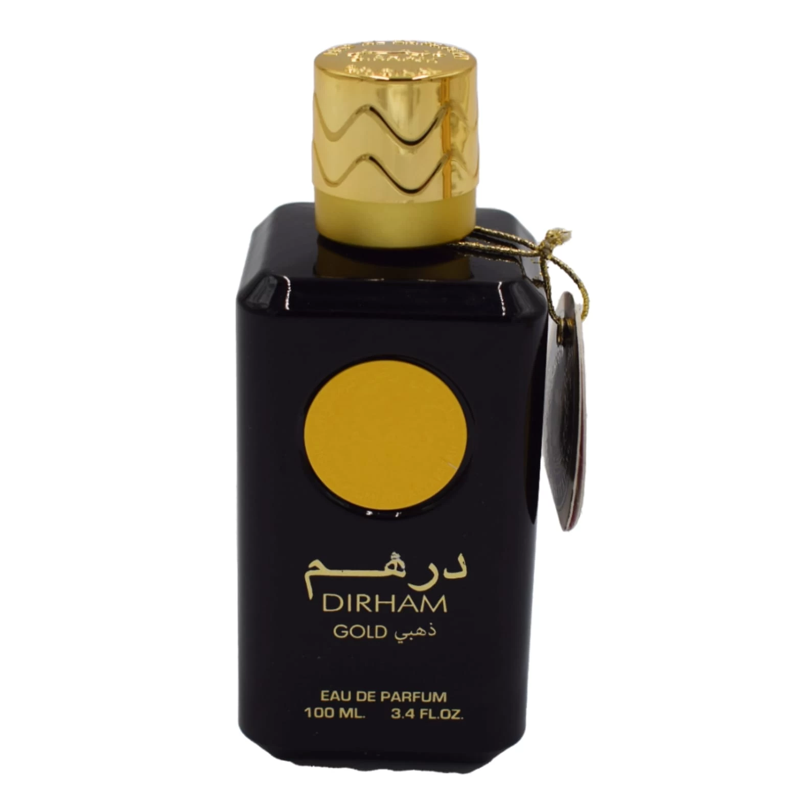 عطر درهم Dirham ماء عطر eau de parfum هو عطر خليجي من شركة أرض الزعفران ، و هو عطر رجالي نسائي رومانسي يستخدم في الصيف أو في الشتاء. يصلح للأشخاص الشاعريين الذين يحبون رائحة الورد والزهور. مقدمة العطر: أزهار البرتقال، الليمون، المندرين، الزنابق، الكشمش الأسود.