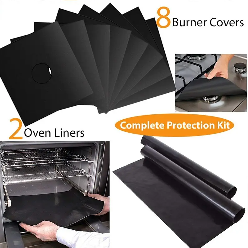 سهلة التنظيف: لا مزيد من المواد الكيميائية الضارة لتنظيف الموقد الخاص بك. يوفر غطاء الفرن الوقت والطاقة، كما أنه سهل التنظيف. ببساطة امسحه بقطعة قماش مبللة أو ضعه على الرف العلوي من غسالة الأطباق وإعادة استخدامه كالمعتاد، احمي الموقد من الانسكابات وبقايا الطعام عن طريق الحفاظ على نظافته.حافظ على نظافة الموقد والمطبخ الخاص بك. يمكن تنظيف هذه الأغطية بسهولة إما بقطعة قماش مبللة أو غسالة الصحون، كما يمكن غسلها عدة مرات.