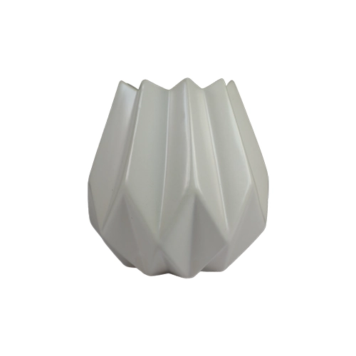 "احصل على فازة سيراميك هندسية باللون الأبيض الآن، وأضف لمسة فنية لديكورك!"