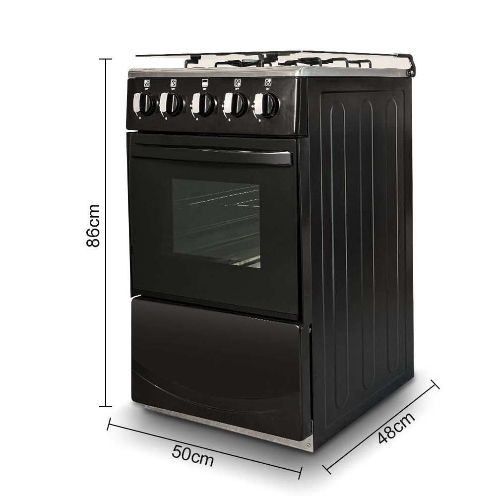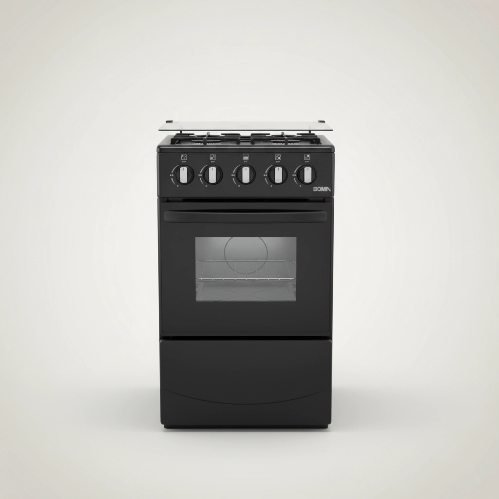 بوتاجاز غاز بلون أسود مطفي، مزود بفرن سفلي واسع مع باب زجاجي شفاف لمتابعة الطهي بسهولة. يحتوي على سطح طهي علوي بعدة شعلات مع مفاتيح تحكم أمامية واضحة وسهلة الاستخدام. التصميم مدمج وأنيق ليناسب مختلف المطابخ العصرية والكلاسيكية.
