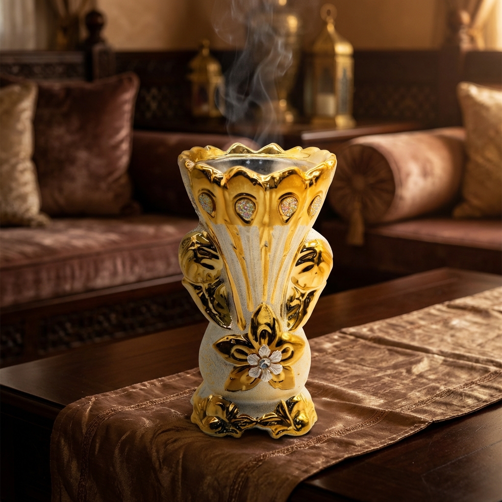 تم تصميم مبخرة GB2107G بشكل فني جذاب يجمع بين الفخامة والعملية، حيث تأتي بهيكل متين مع زخارف ذهبية لامعة تضيف لمسة ديكور راقية لأي مجلس أو غرفة. توفر المبخرة استخداماً سهلاً لحرق البخور أو العود، مع تصميم يساعد على انتشار الرائحة العطرة في المكان، لتمنحك أجواءً دافئة ومميزة في المنزل أو عند استقبال الضيوف.