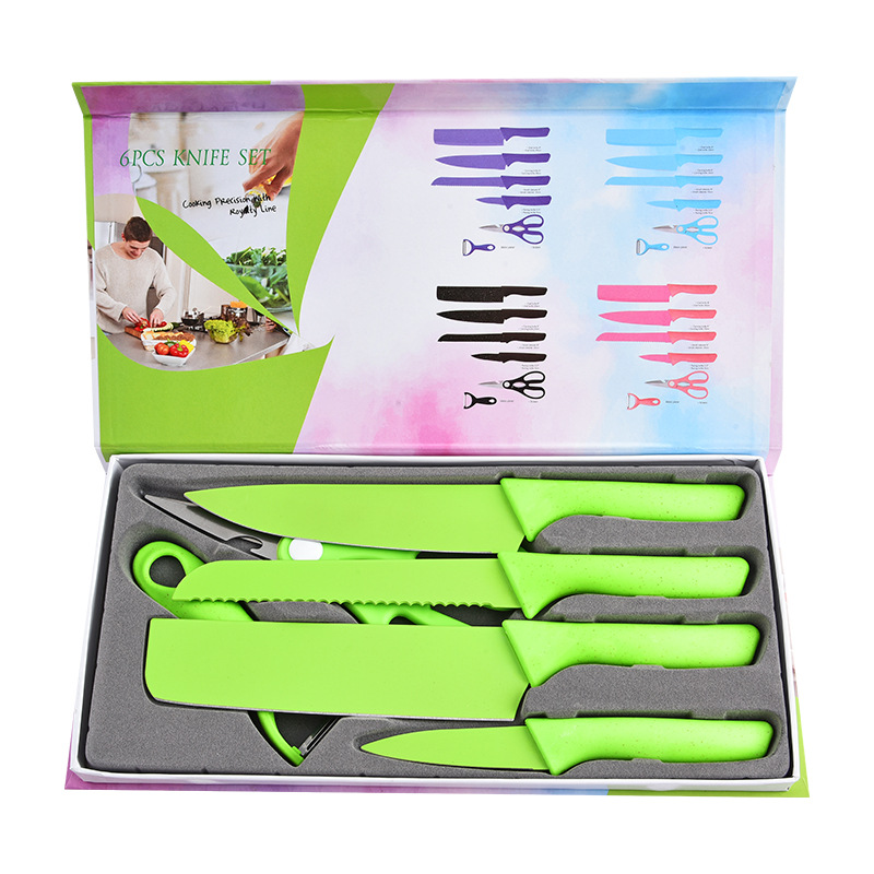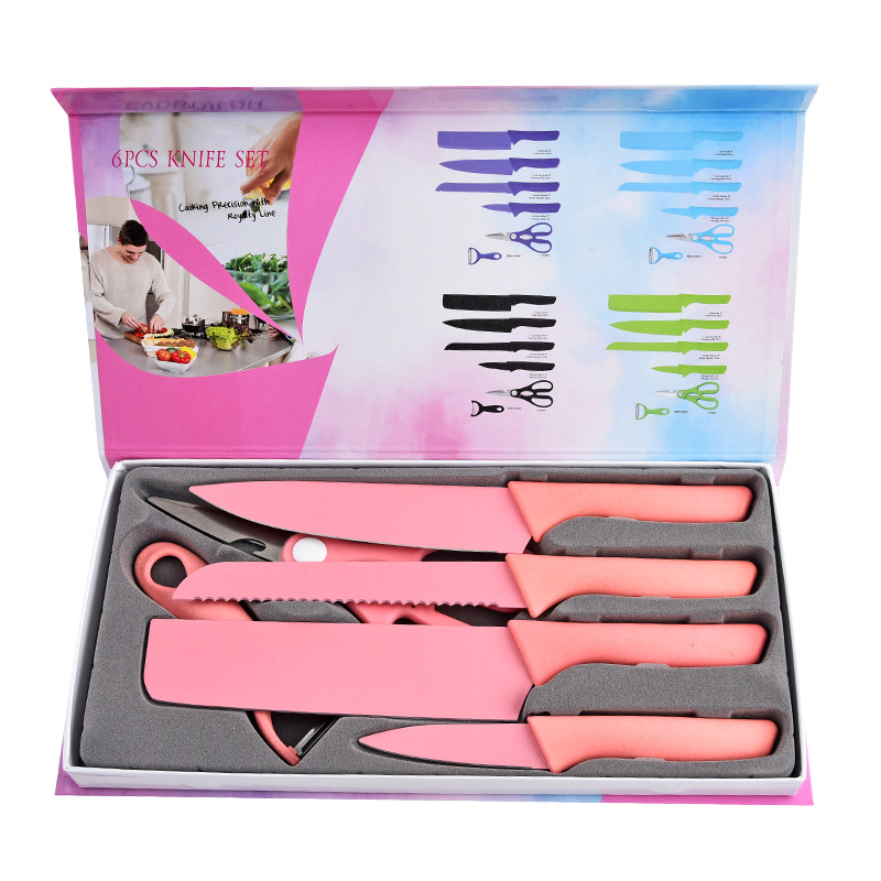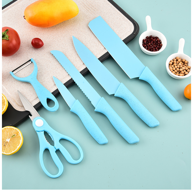 عدد القطع: 6 أدوات (4 سكاكين + مقص + مقشر)
