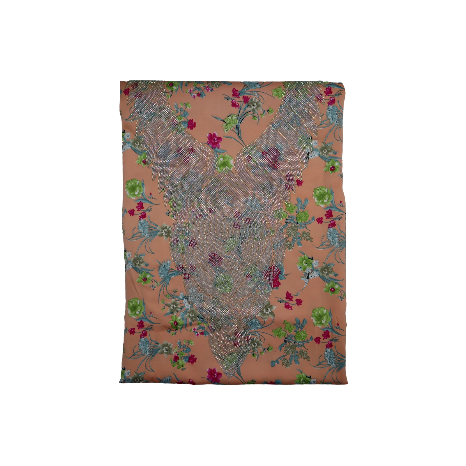 مخور حرير متروس بفصوص يتميز بتصميمه الفاخر والمزخرف بالفصوص اللامعة. تجمع هذه القطعة بين الأناقة والجمال، مما يجعلها الاختيار المثالي للمناسبات الخاصة.