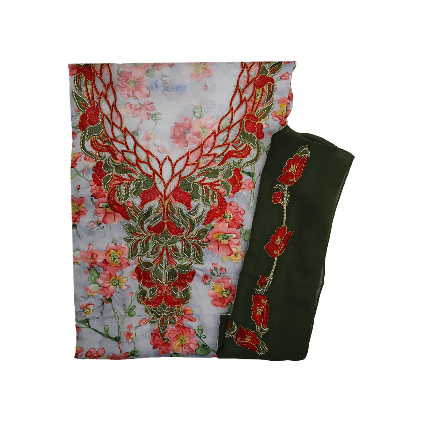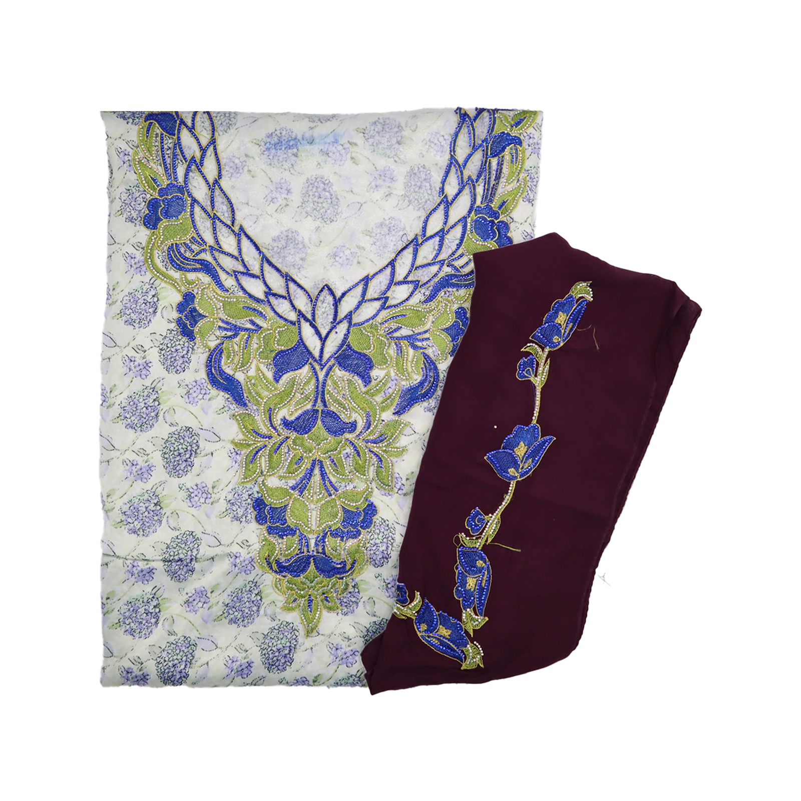 مخور مطرز من قماش الحرير الفاخر مع شيلة بتطريزات مميزة، يتوفر بعدة ألوان فاخرة ليمنحكِ إطلالة أنيقة وراقية في كل مناسبة.