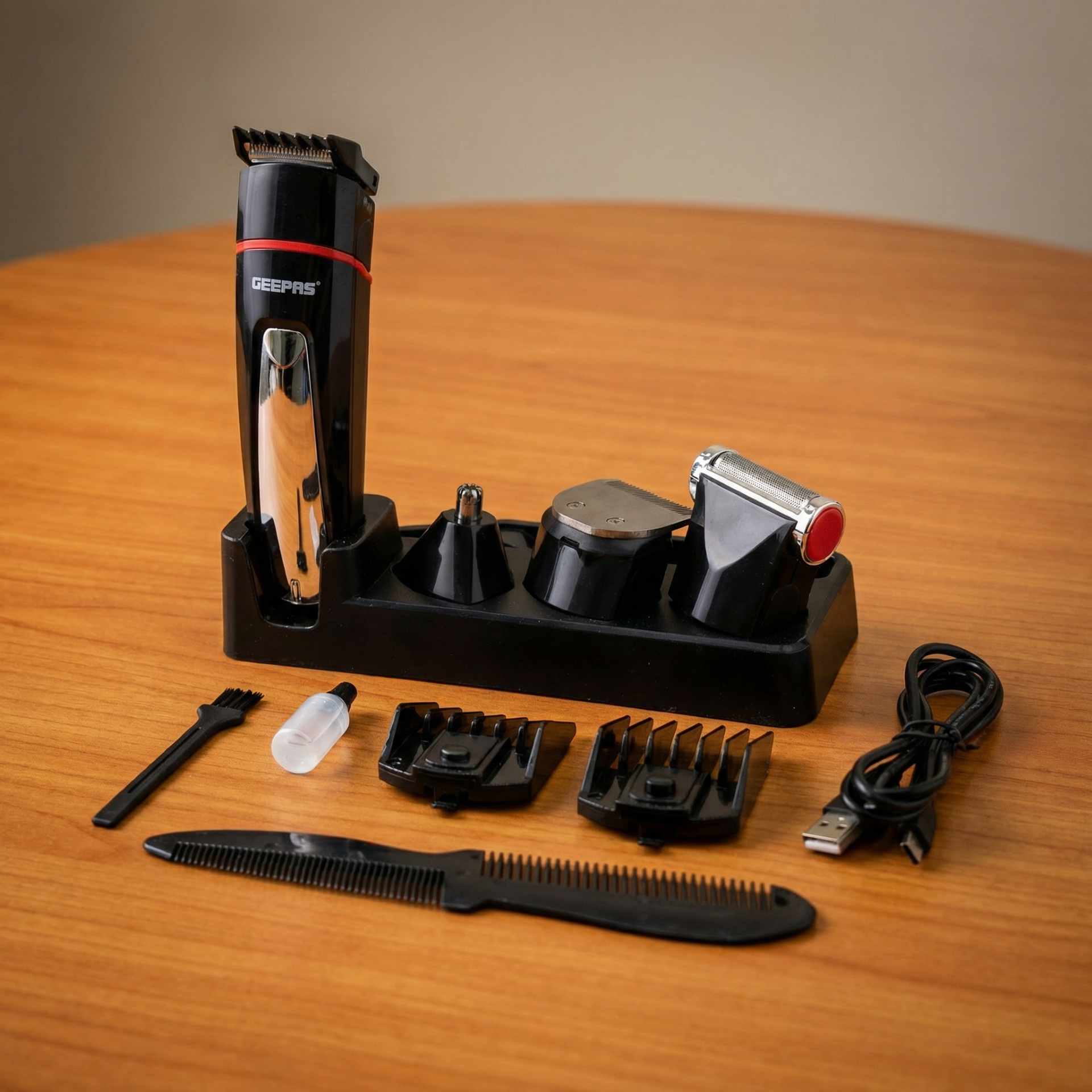 يأتي مزودًا بملحقات تشمل أمشاط تحديد، فرشاة تنظيف، زيت صيانة، وكابل شحن، مما يجعله حلاً متكاملاً للعناية اليومية في المنزل أو أثناء السفر.