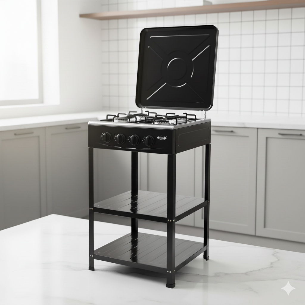موقد غاز 4 عيون مع ارفف وغطاء للحماية BM-305