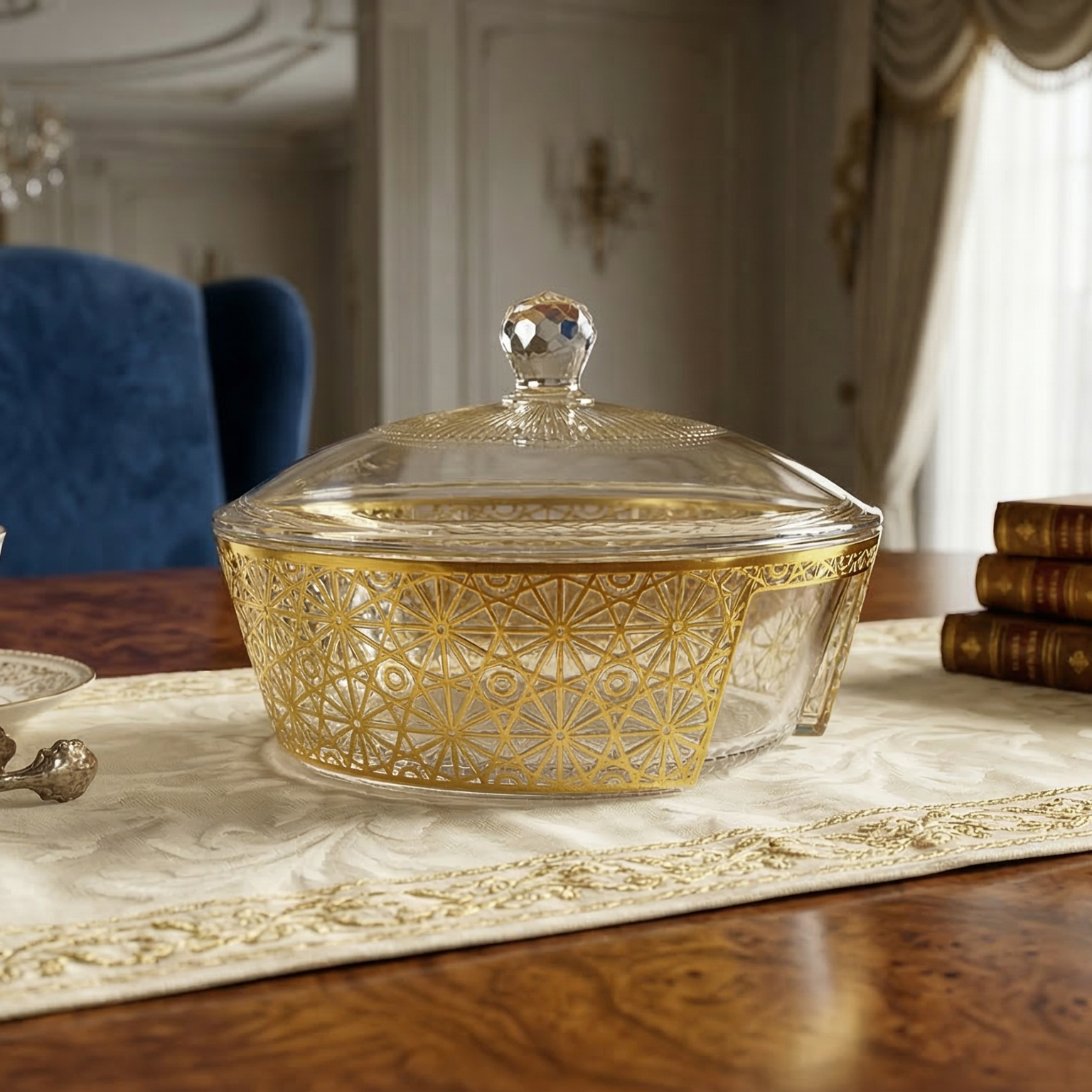 وعاء فواكة و حلويات مذهب مع غطاء كبير